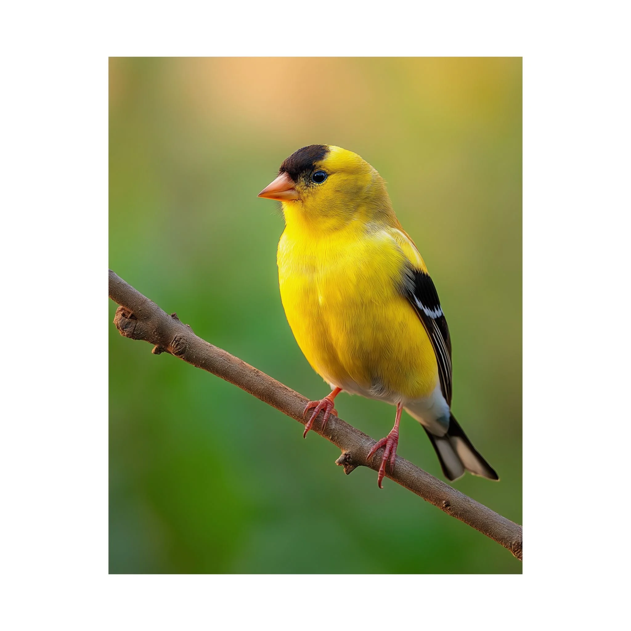 A vivid matte poster that brings a single brilliant Goldfinch into quiet, everyday rooms. Printed with museum‑grade archival paper and Giclée inks, the bird’s red plumage and the soft blush of apple blossoms stay rich and luminous without glare. The matte finish soaks up light for a painterly feel — like a small, framed moment of spring perched on your wall. Sized to fit many spaces, this indoor poster creates a calm focal point in living rooms, reading nooks, or hallways and complements natural, cottage, and botanical interiors.