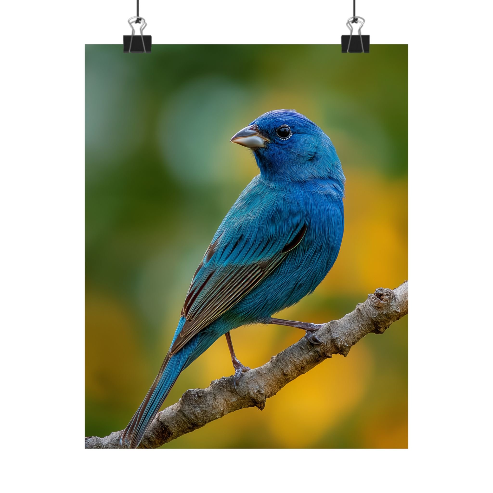 A vivid matte poster that brings a single brilliant Indigo Bunting into quiet, everyday rooms. Printed with museum‑grade archival paper and Giclée inks, the bird’s red plumage and the soft blush of apple blossoms stay rich and luminous without glare. The matte finish soaks up light for a painterly feel — like a small, framed moment of spring perched on your wall. Sized to fit many spaces, this indoor poster creates a calm focal point in living rooms, reading nooks, or hallways and complements natural, cottage, and botanical interiors.